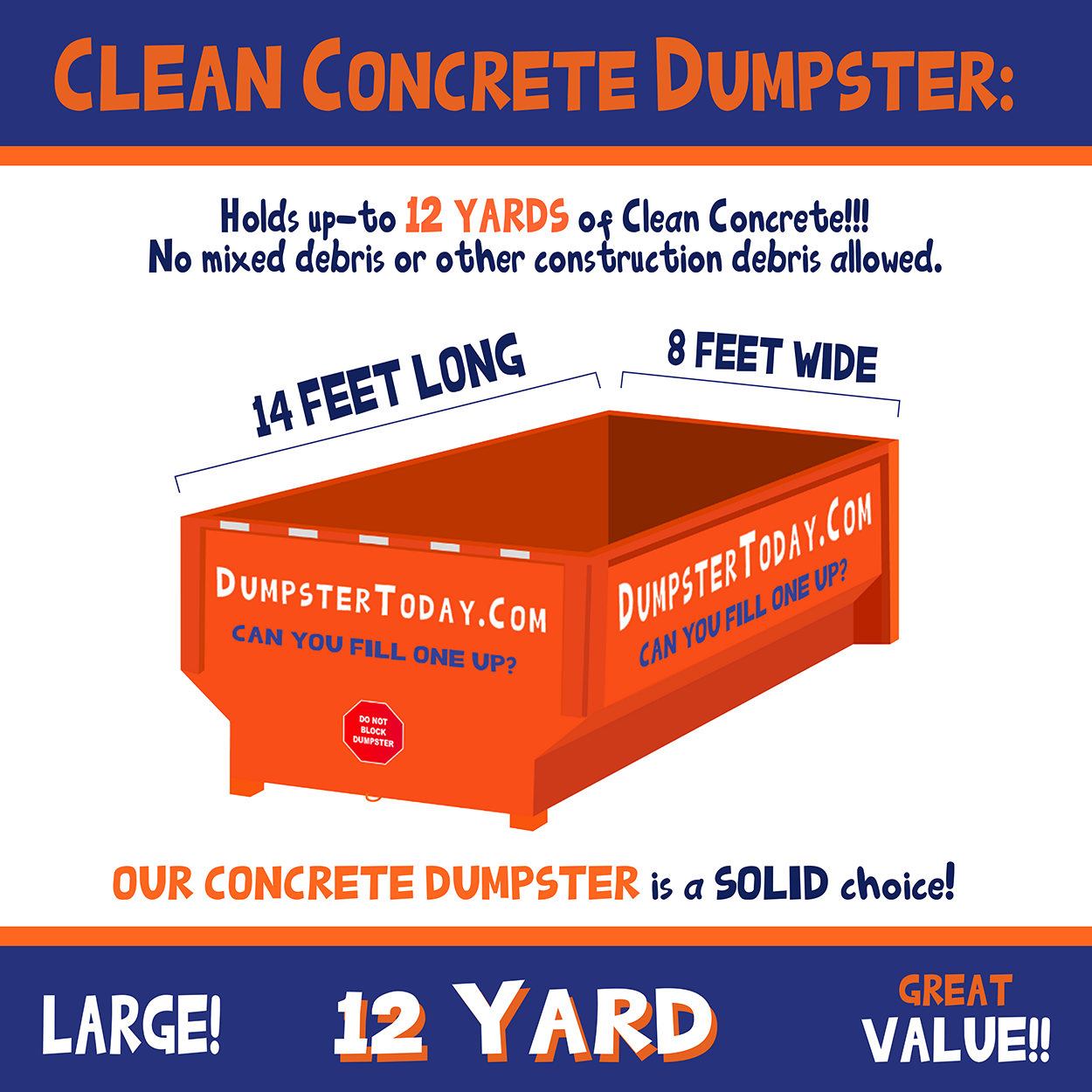 We offer 2 dumpster sizes (12 Yard or 18 Yard) and standard rental periods of 3 or 7 days. Looking for a 10 yard dumpster? Our 12 Yard dumpster is an affordable, great choice, with less risk of overfilling! Looking for a 20 yard dumpster? Save by choosing our 18 yard and order a swap for another if you need it! You can also save more by pre-paying for weight. We leave the options up to you!
